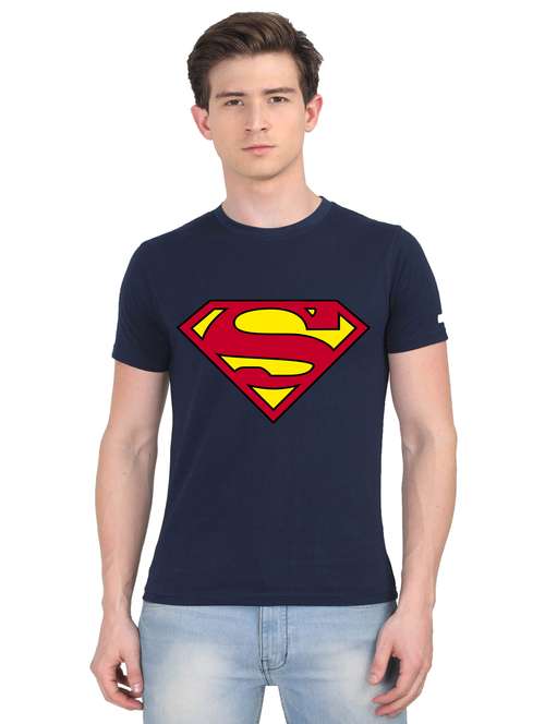 navy-blue chest print t-shirt