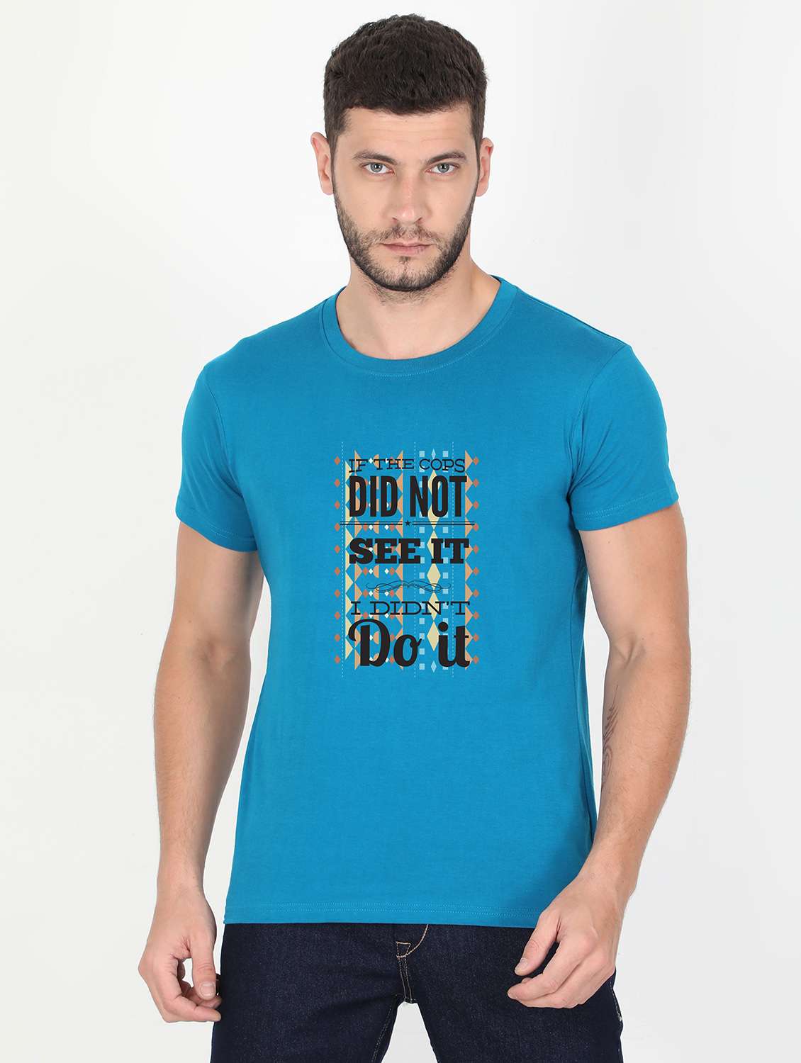 blue printed t-shirt
