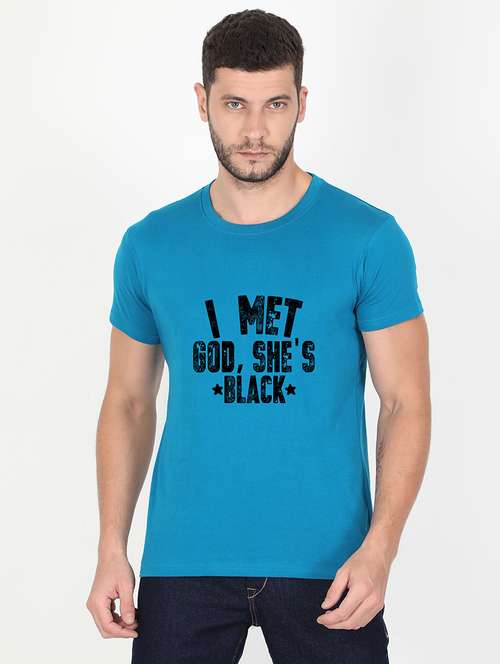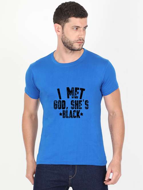 blue printed t-shirt