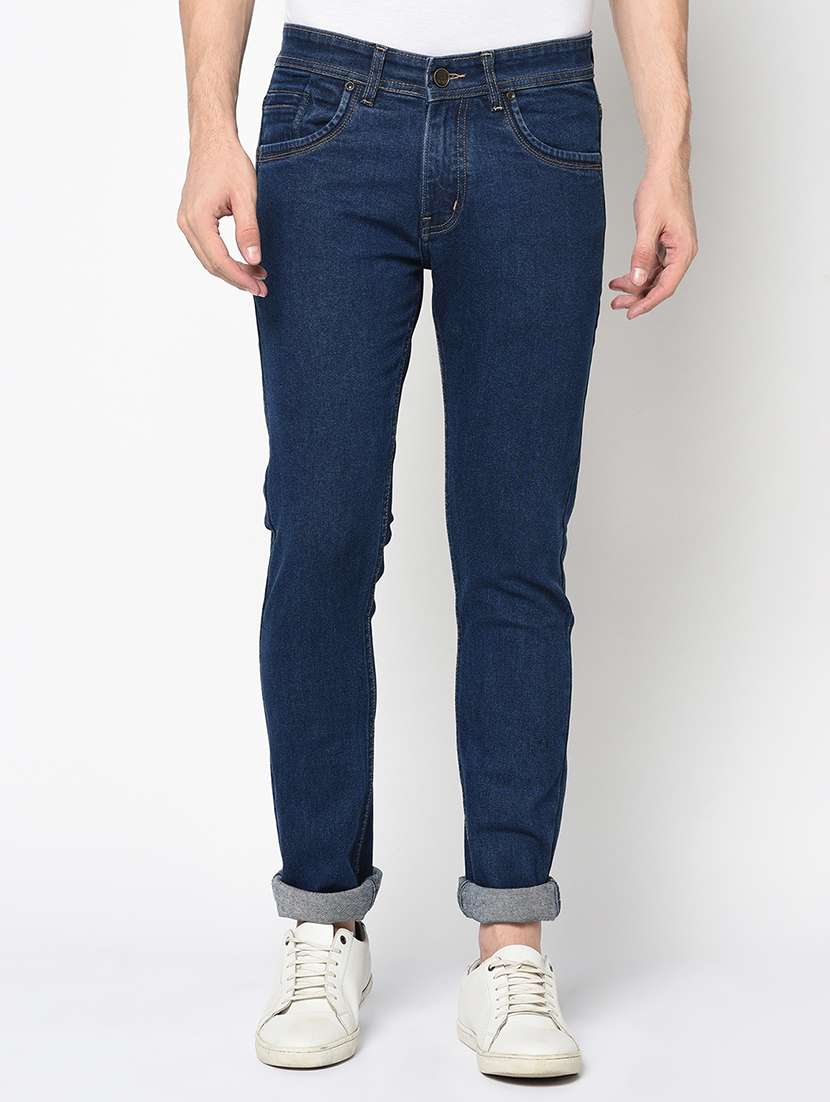 - » dark blue plain denim jeans