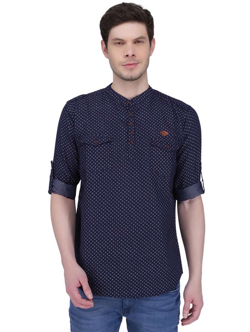 dark blue printed denim short kurta - 16825565 - Very Small Image - 1
