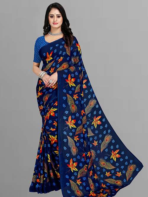 women printed casual wear saree with blouse