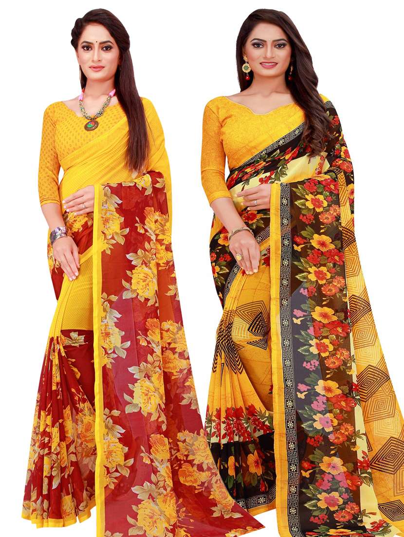 women pack of 2 casual wear combo sarees with blouse