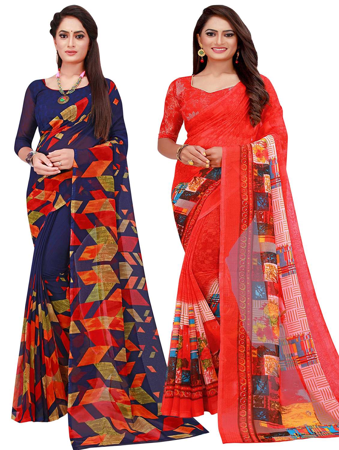 pack of 2 printed saree with blouse