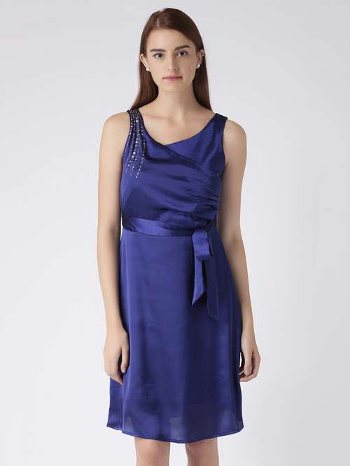 - » Pleat detail tie knot belted dress