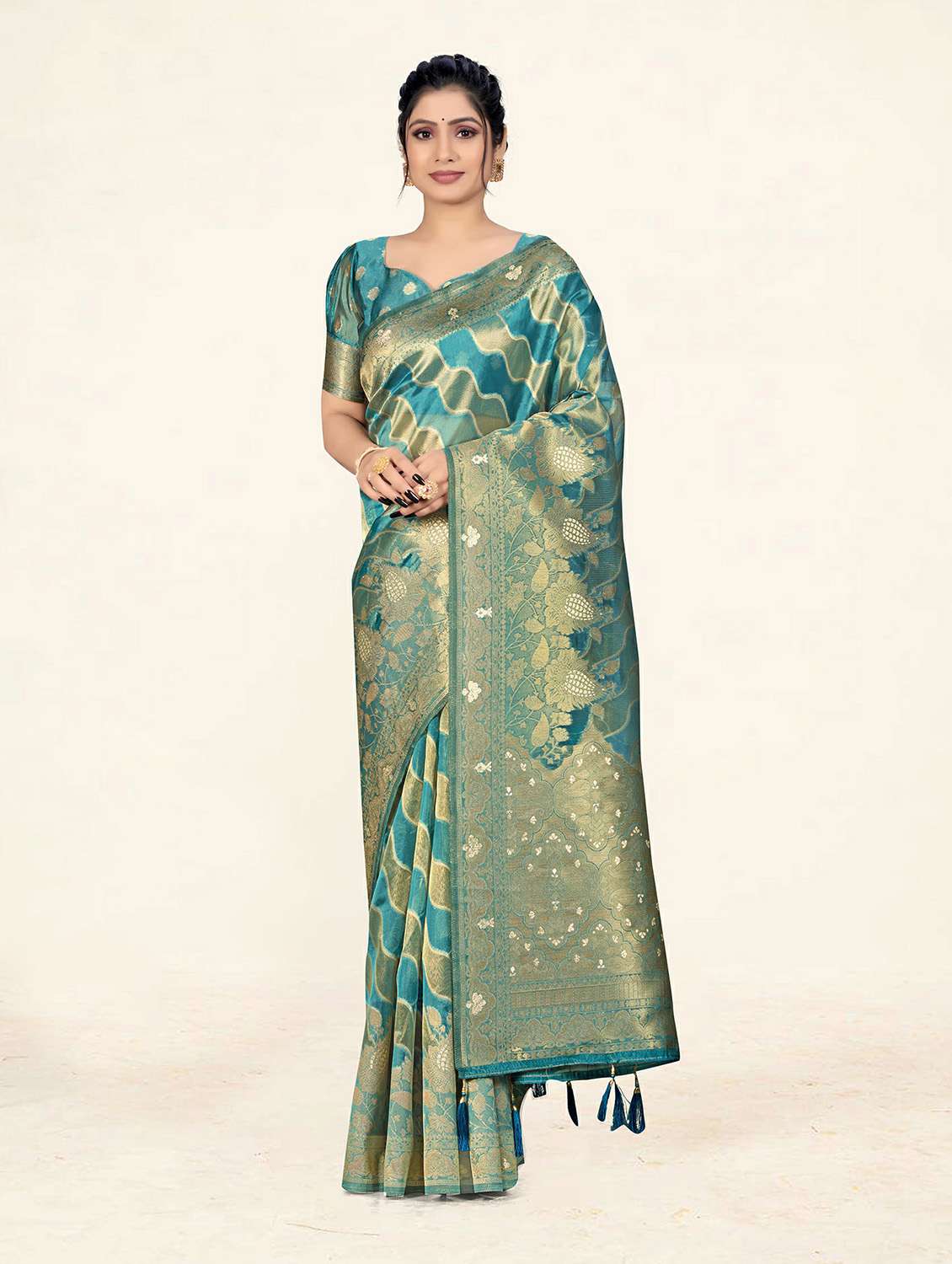 Rich pallu saree with MX zari woven motifs having latkan
