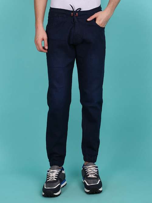 - Wish to complete the chic look on every occasion without compromising on comfort? Then do check out these elasticated joggers for casual wear occasions in navy blue hues.