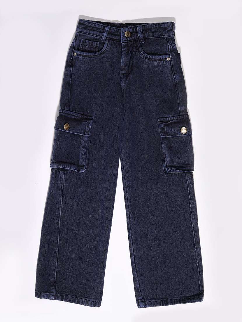 girls solid mid rise relaxed fit cargo
