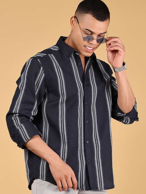 men striped long sleeve regular fit casual shirt
