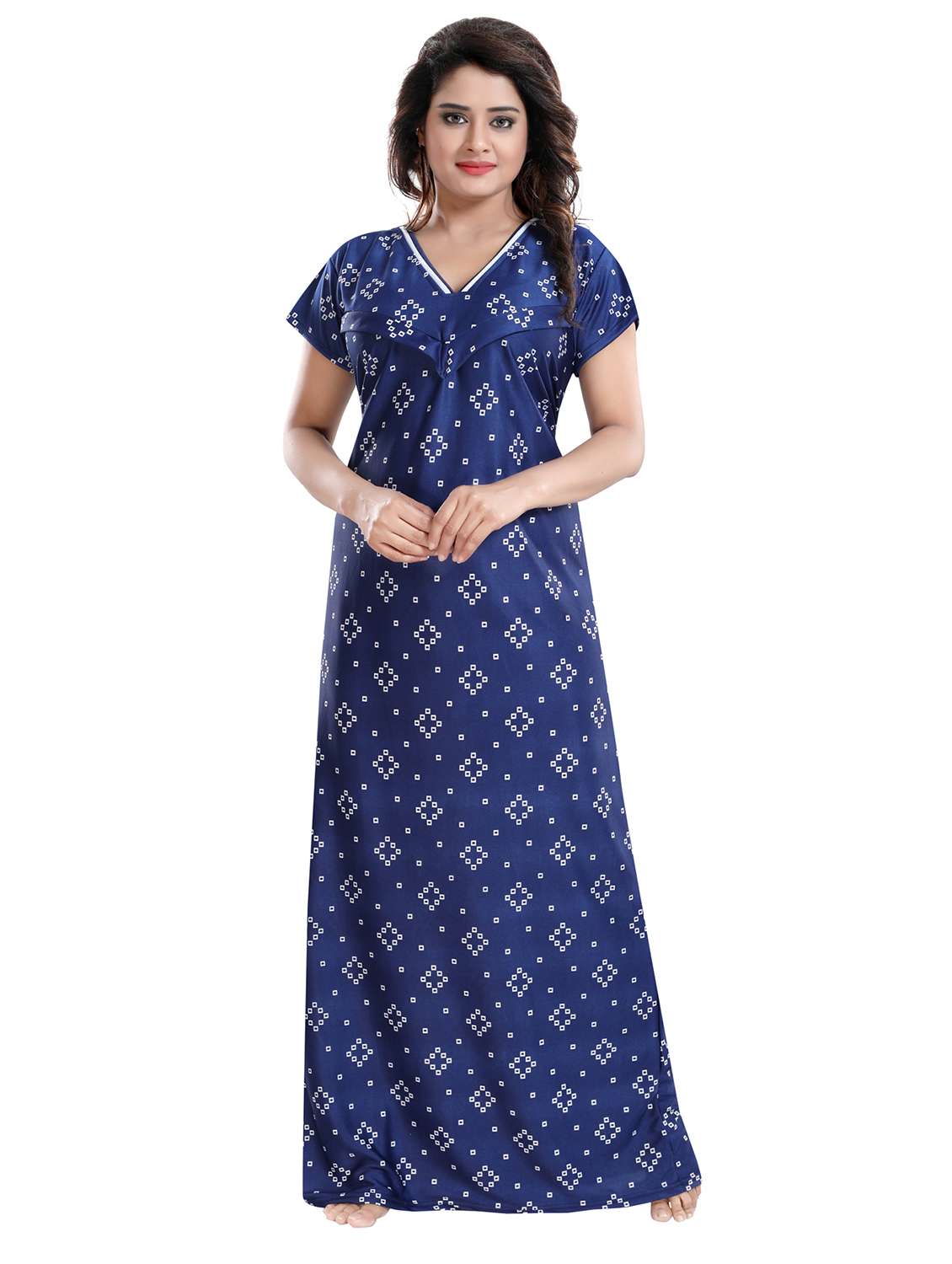 Make your feeding session relax & comfortable with this Sarina Satin Maternity Nighty for Feeding. This printed nightgown has zipper on both side for feeding purpose, short sleeves & V- Neck. This Nighty is the ultimate blend of comfort and style. Length Full (approx-56 inches) Size-Free (comfort fit to bust 32-38 inches) Sales Package: 1 Maternity Gown