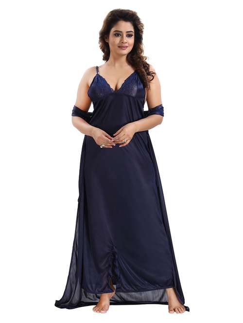 - » be you solid navy blue satin 6 piece nightwear set (1 robe, 1 nighty, 1 top, 1 patiyala, 1 lingerie set) for women