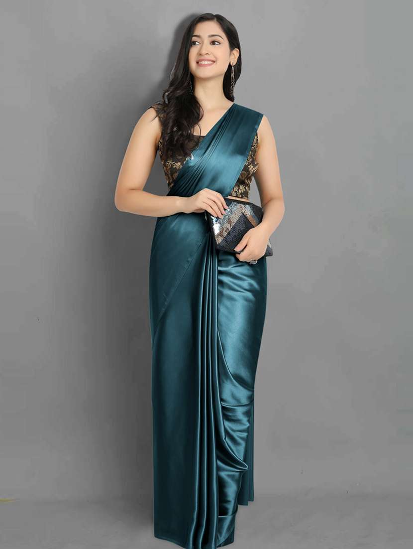 - » dark blue satin plain saree