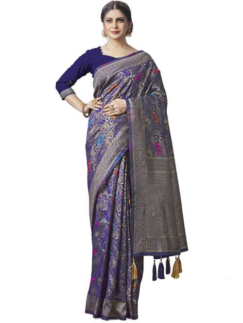 self design woven saree with blouse - 19691947 - Very Small Image - 1