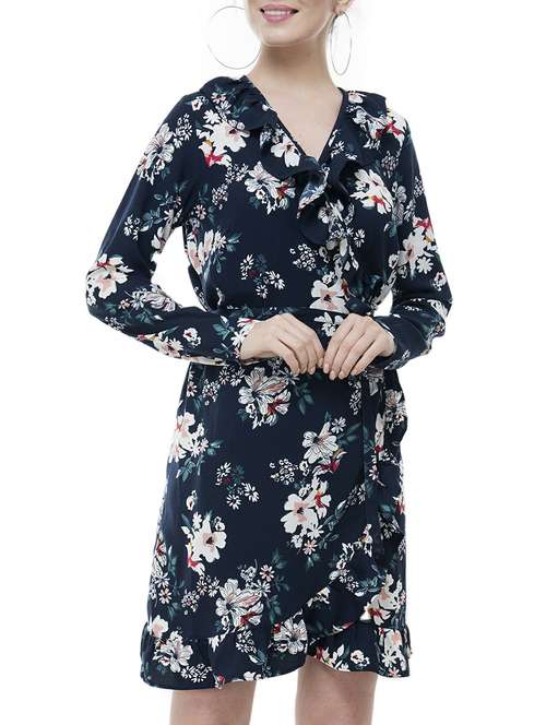 ruffled detail printed dress