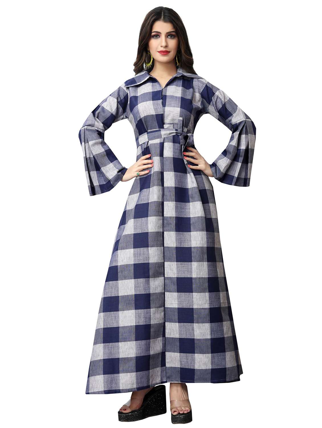 - » a-line checkered bell sleeves kurta