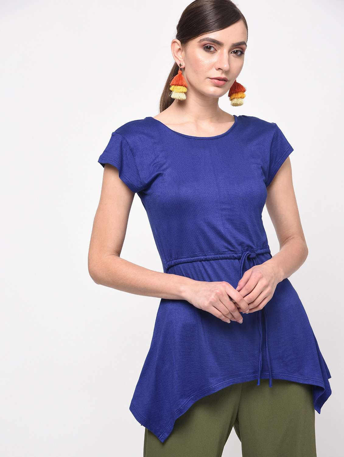 women's asymmetric round neck top
