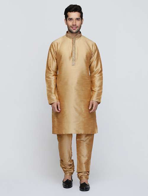 - » men solid mandarin neck kurta churidar ethnic wear set