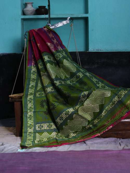- » Dark Green and Red Saree