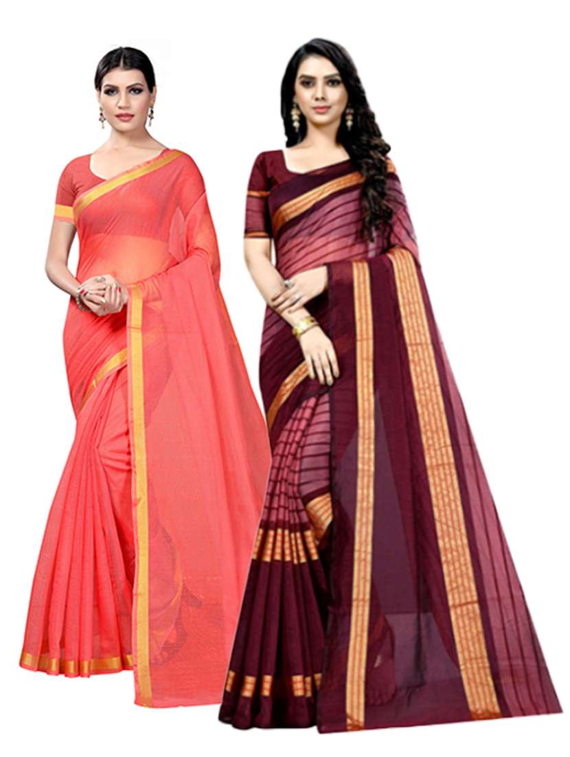 women pack of 2 casual wear combo sarees with blouse