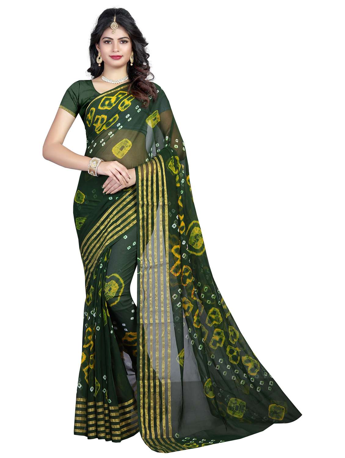 women's bandhani dark green colored saree with blouse - 18584661 -  Standard Image - 1 women's bandhani dark green colored saree with blouse - 18584661 -  Zoom Image - 1