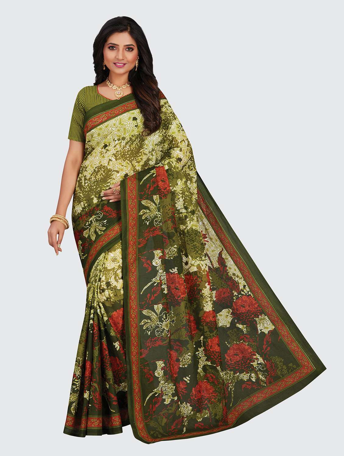 - » dark green cotton printed saree