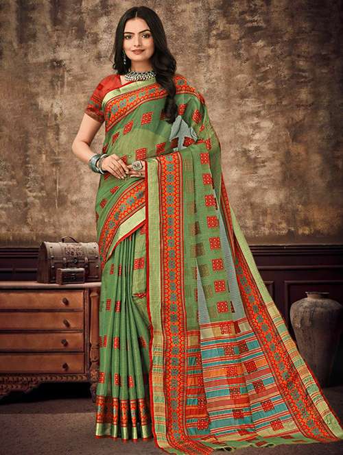 women's self design lime colored saree with blouse
