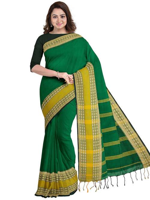 - » dark green cotton silk saree