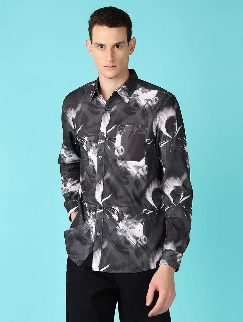 men long sleeves printed casual shirt