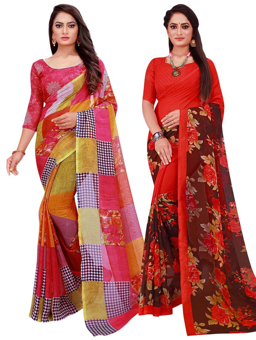 pack of 2 printed casual wear sarees with blouse