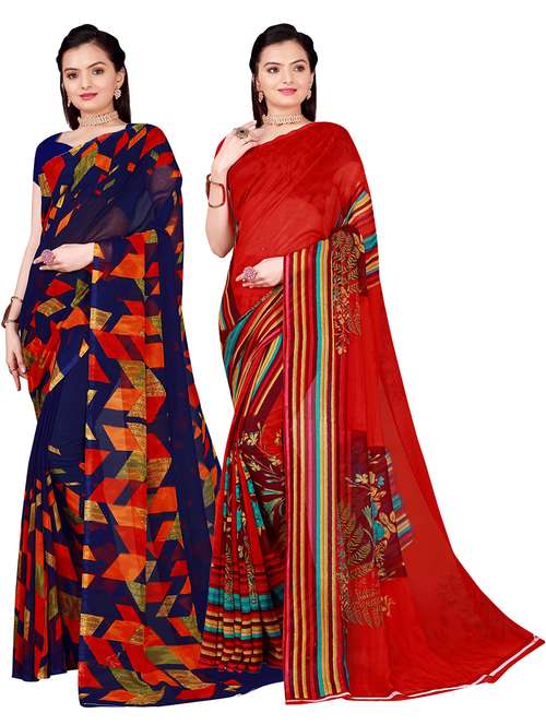 women pack of 2 casual wear combo sarees with blouse - 21456344 - Very Small Image - 1