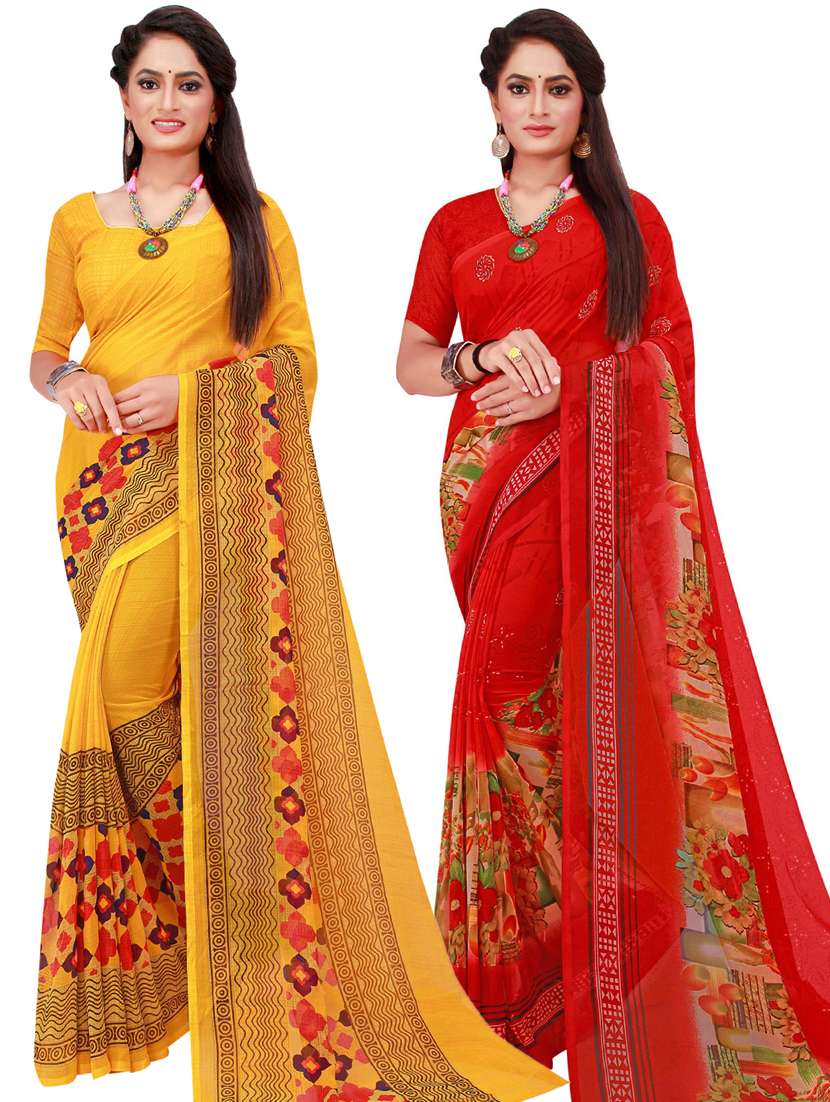 women pack of 2 casual wear combo sarees with blouse