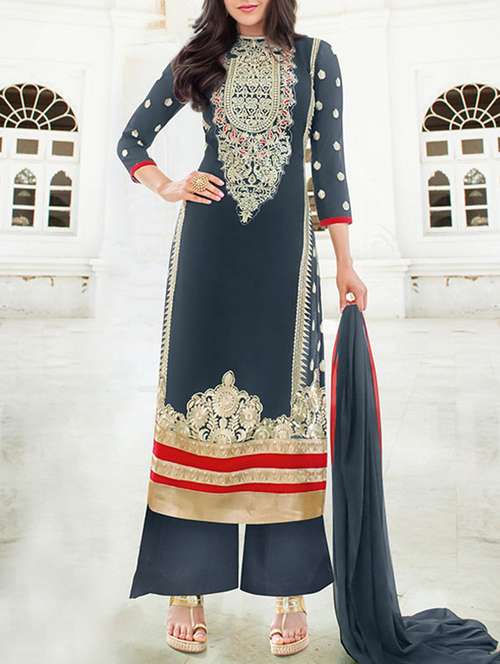 - » navy blue semi stitched georgette suit set