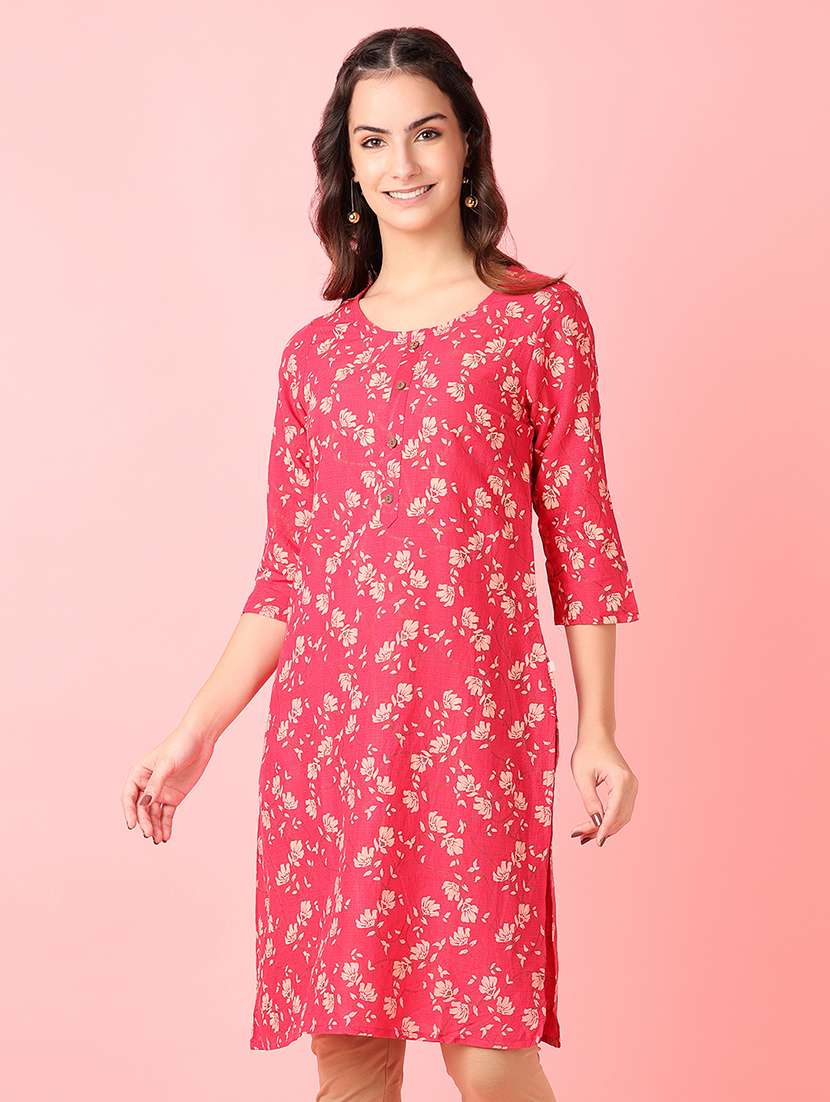 - Grab this beautiful kurta made up of rayon fabric featuring round neck designs.