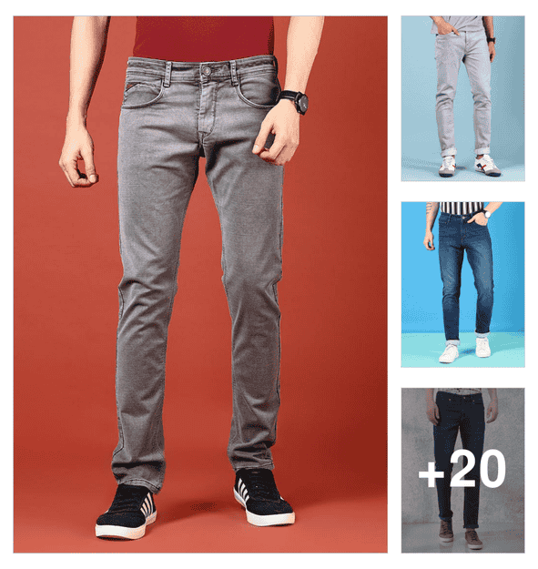 men plain mid rise full length baggy jeans