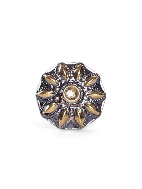 92.5 sterling silver dual toned floral statement ring