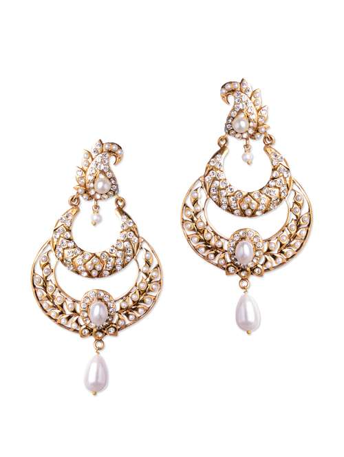 dual circle white drop earrings