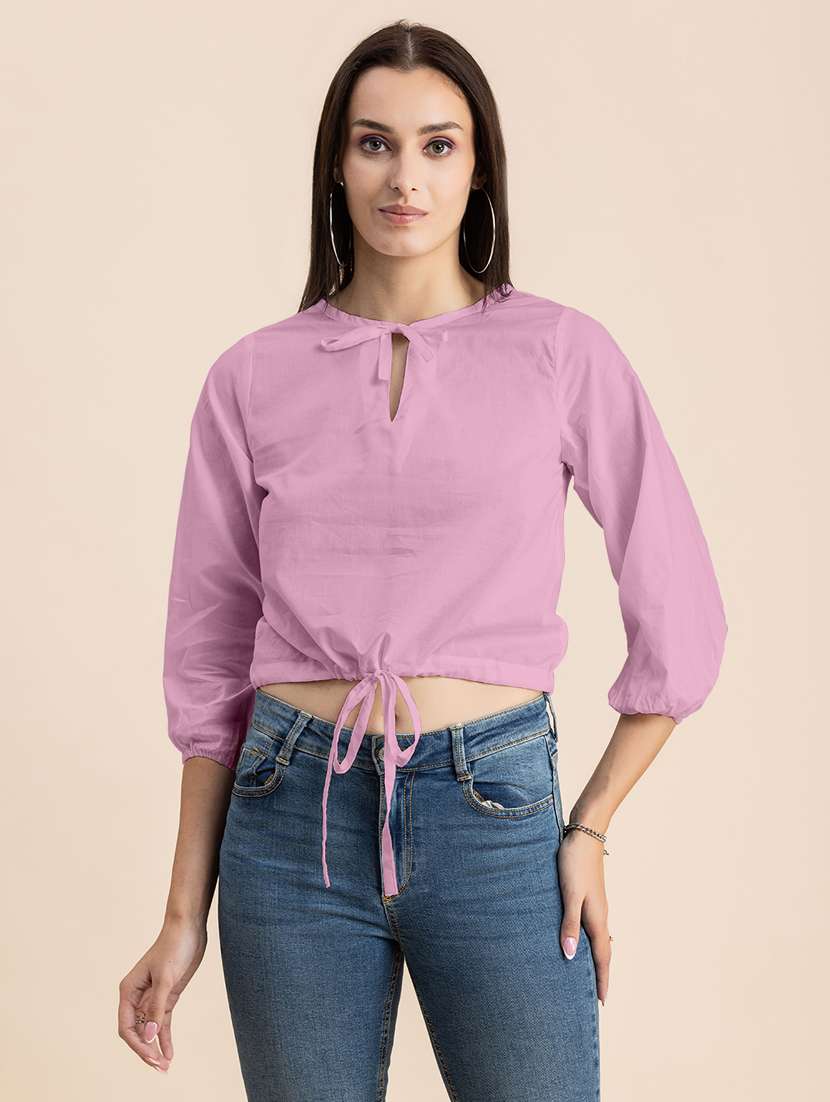 - Opt for this top made up of cotton material and get it in a varied neck design.