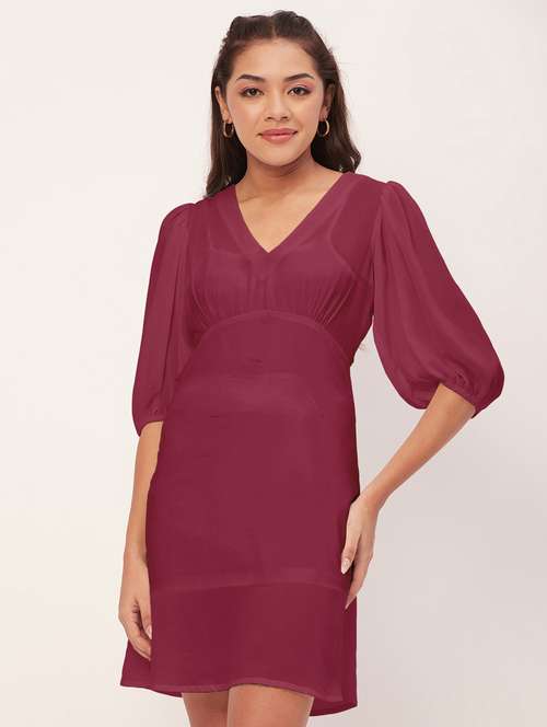 *Includes:This Clothing Consists Of 1 Dress (Any Accessories Worn By The Model Are Not For Sale)*Material:Moss Georgette Gsm 131*Dress Length:35 Inches (Approx.)*Model Stats:The Model In The Image Is 178 Cm Tall, And Bust 34\ Inches Is Wearing Size - (S) Small*Features:Short Balloon Sleeves, V-Neck, Above Knee Length, Light Weight, Solid Colors.*Care:Machine Wash Dry, Tumble Wash Low, Remove Promptly*Size Information:Please Refer To Our Size Chart Before Making The Purchase. If Your Size Is In Between Two Sizes, We Recommend That You Choose A Larger Size.*Tags:Solid Shift Dress For Women, Balloon Sleeve Dress, Solid Colors Dress, Partywear Dress For Women, V-Neck Short Dress, Women's Dresses Wrap Style, Evening Cocktail Dresses, Solid Color Dress For Women