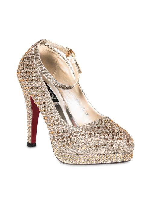 - » Embellished Copper Mesh Ankle-Strap High Heel Pumps