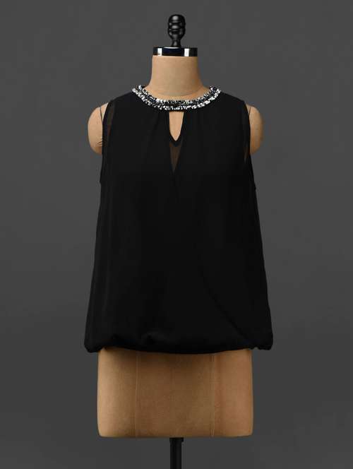 embellished neckline layered georgette top - 1008438 - Very Small Image - 1