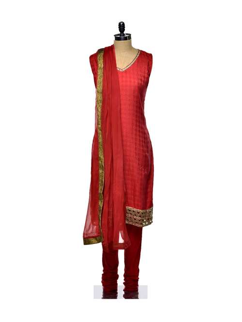 embellished red chanderi suit set