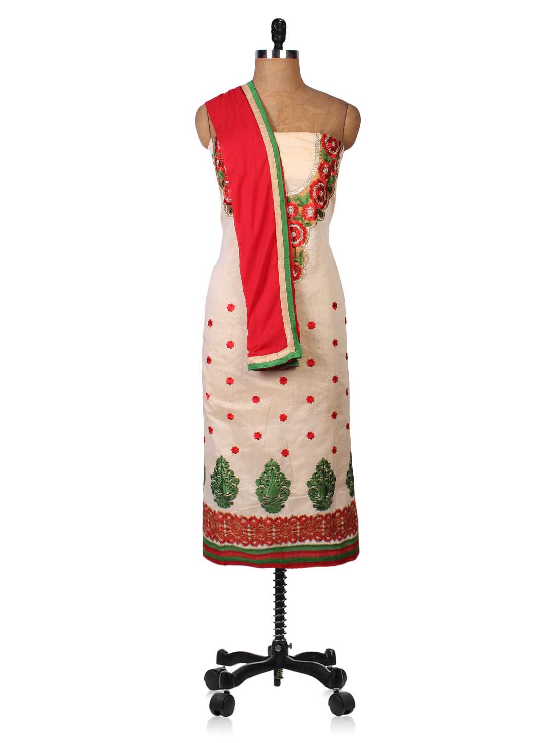 - » embroidered beige chanderi unstitched suit set