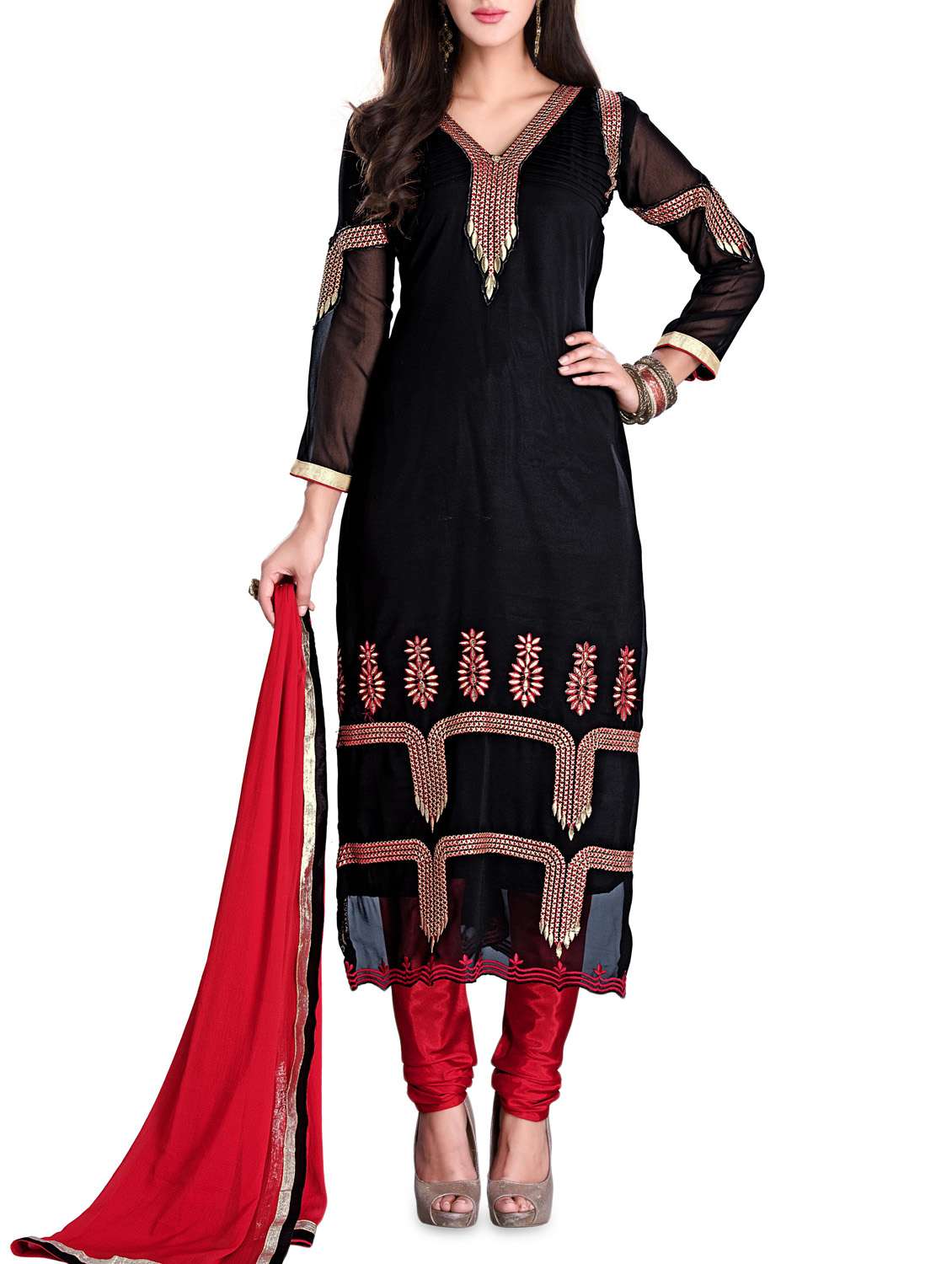 - » embroidered black semi-stitched suit set