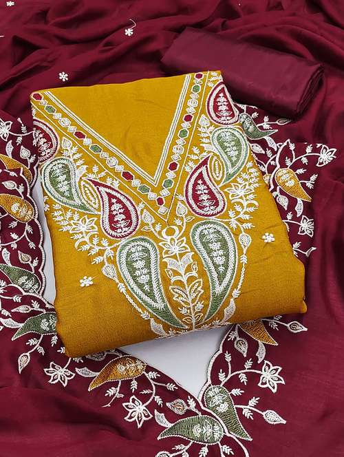 women solid with work embroidered unstitched suit set