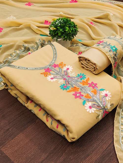 - Look ultra gorgeous in unstitched suits from Lilots and grab these beautiful suits in beige colour.