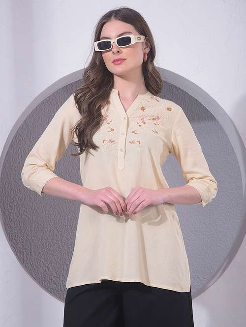 women solid with work round neck ethnic top