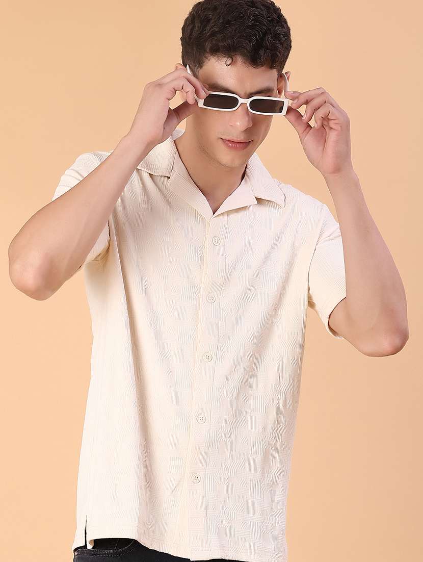 - » men self design short sleeve regular fit casual shirt
