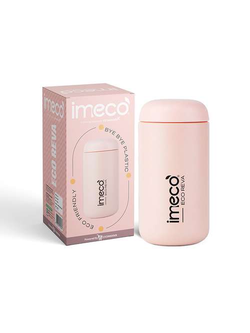 imeco eco reva capsule shaped stainless steel insulated vacuum flask upto 7 hrs hot & cold 400 ml - light yellow