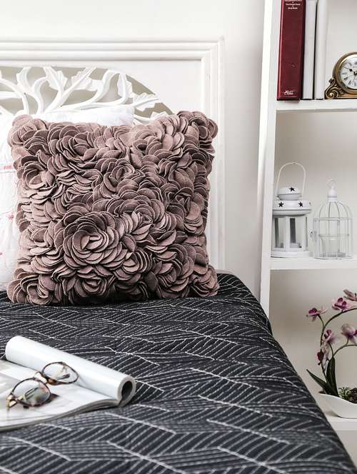 - » cedar brown floral ruffled single cushion cover