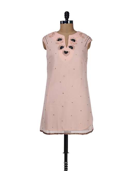 - » floral embellished peach top